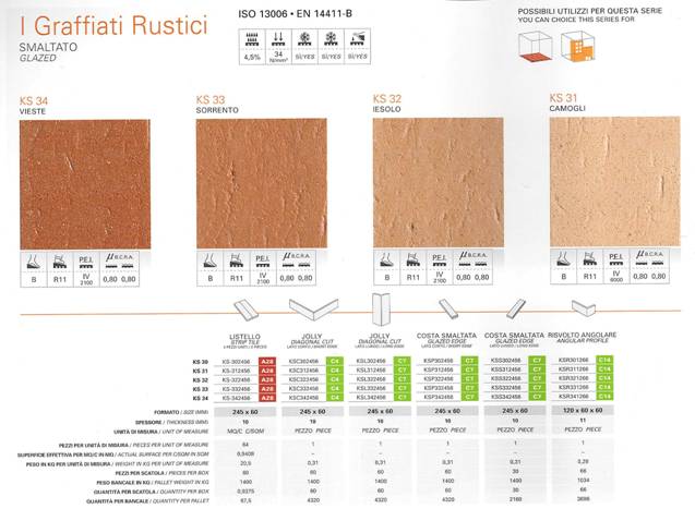 The tile are made in Italy extruded Klinker, with “dovetail” on the back of the tile. Temperature 1250℃ firing, frost resistant, acid resistant, in conformity with the ISO 13006 and EN 14411-A or EN 14411-B standards. It is perfect for home, terraces, shops and town squares, stairways and arcades. Complete with all the special tiles required to crown the project down to the last detail. And not even the most intense use can spoil its endless charm.